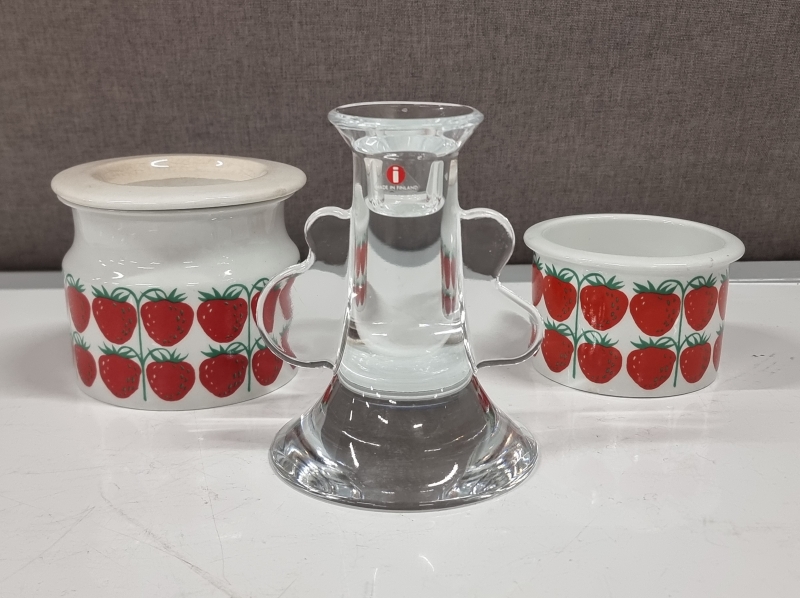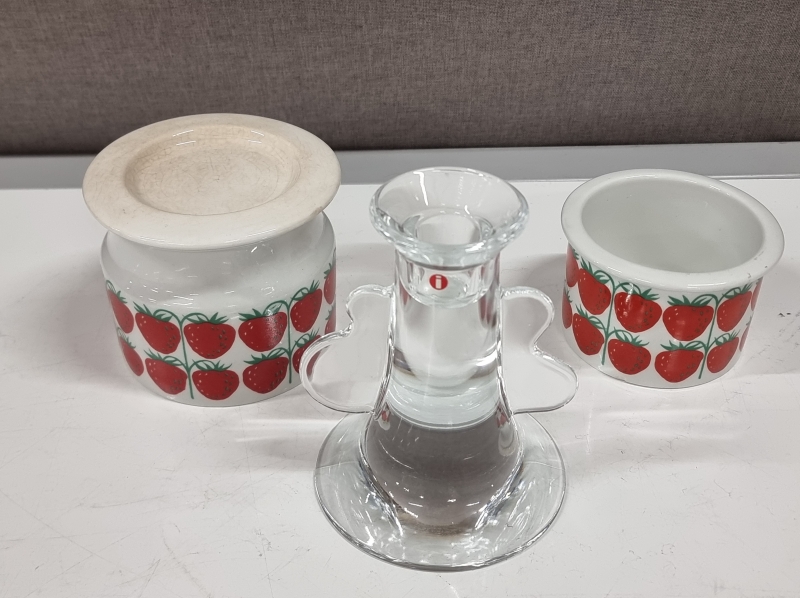 #650 - 2kpl Arabia Pomona purkkeja + Iittala kynttilänjalka
