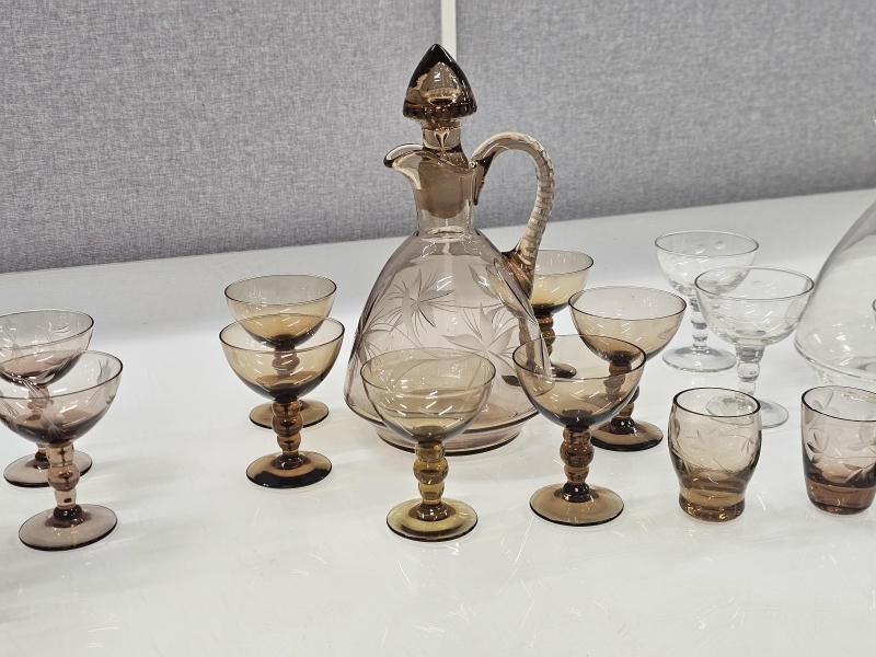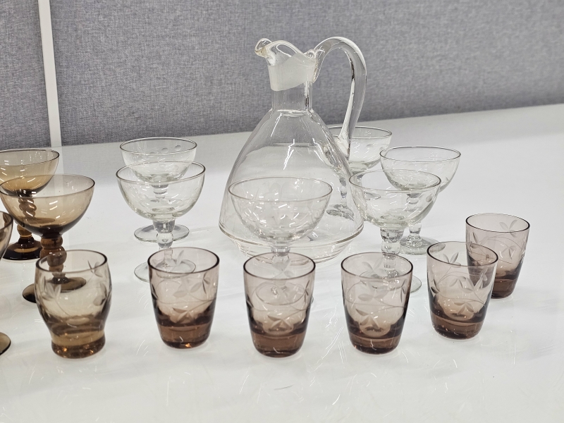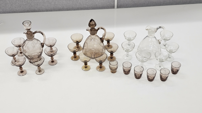 #236 3kpl Ilmari Kumela lasisarjoja kauniilla kuviokaiverruksilla + snapsilasit