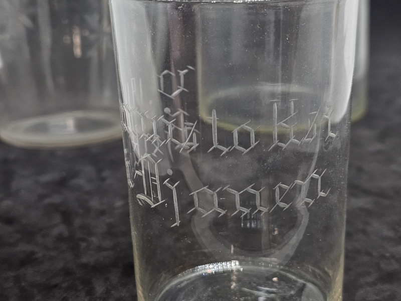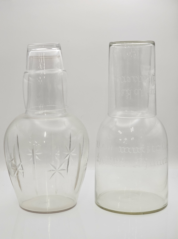 #245 2kpl 1900-luvun alun yökarahveja laseilla, toisessa kaiverrukset v.1911
