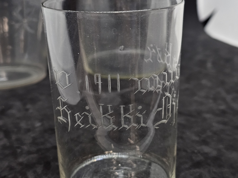 #245 - 2kpl 1900-luvun alun yökarahveja laseilla, toisessa kaiverrukset v.1911