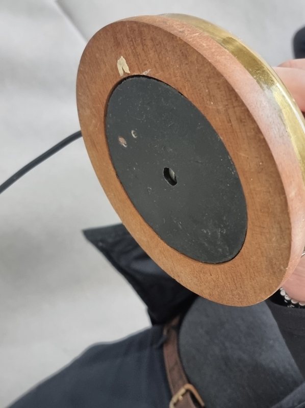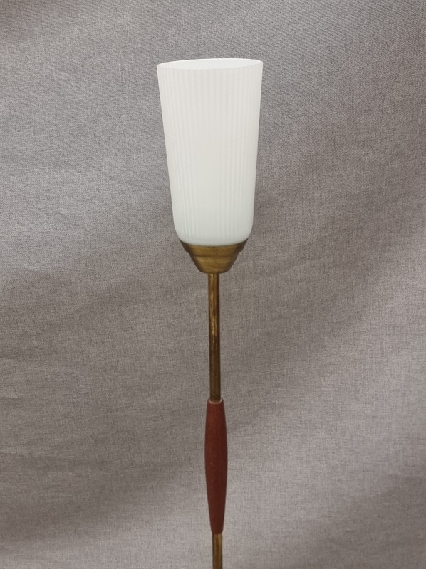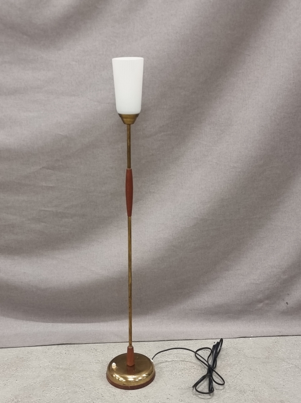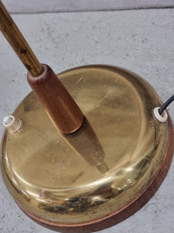 #918 Vanha lattiavalaisin teak-puu /messinki osilla