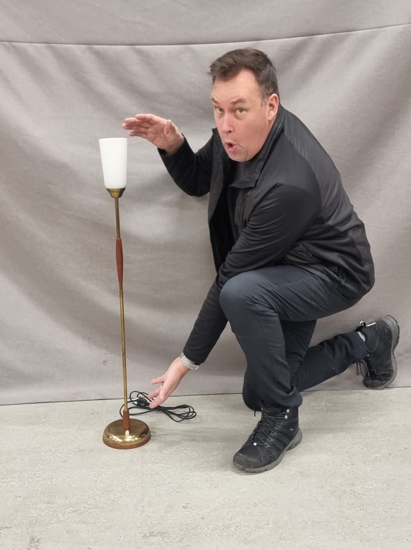 Jalkaosan messingissä kolhuja. Kork. 99cm