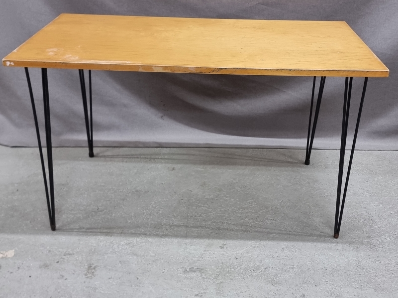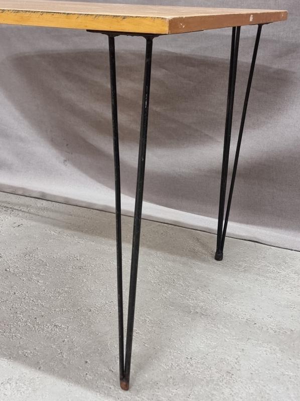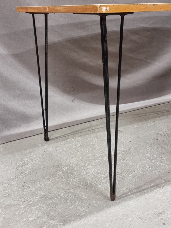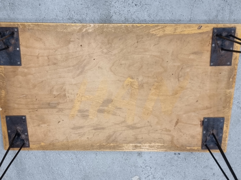 Kulumaa, 2 jalan muovisuojaa puuttuu, yksi jalka mutkalla. 109cm x 62cm, korkeus 60cm
