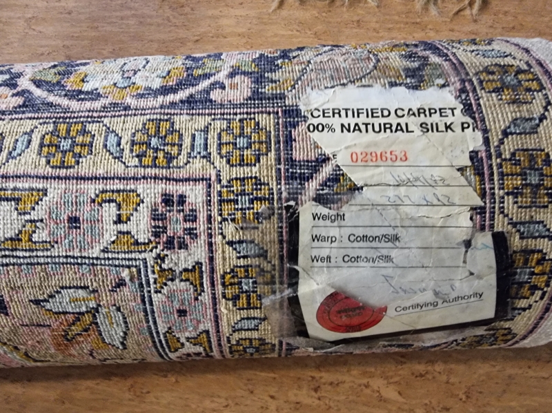 Haalistumaa sinisessä värissä, yksi tahra. Juuri pesty. 176cm x 344cm