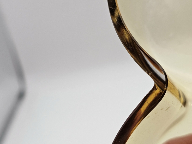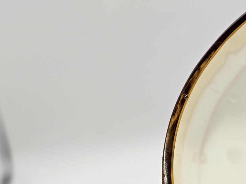 Muutama pieni kolhu reunassa. Korkeus 14,6cm