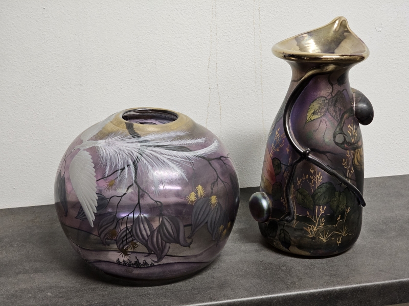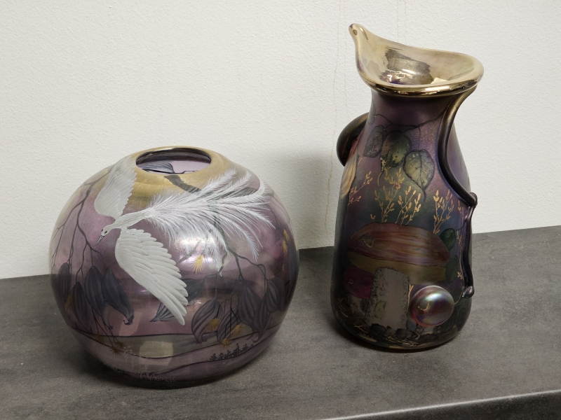 #353 2kpl taidelasimaljakoita joista ainakin toinen Erwin Eisch