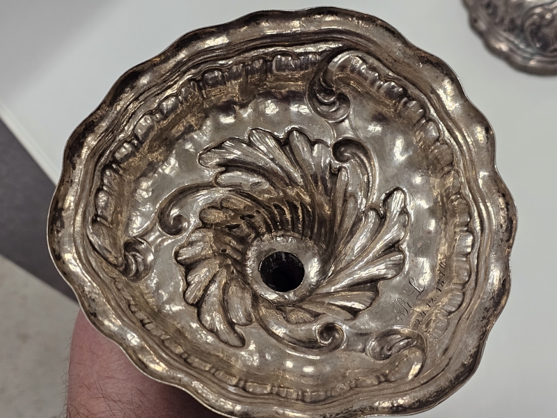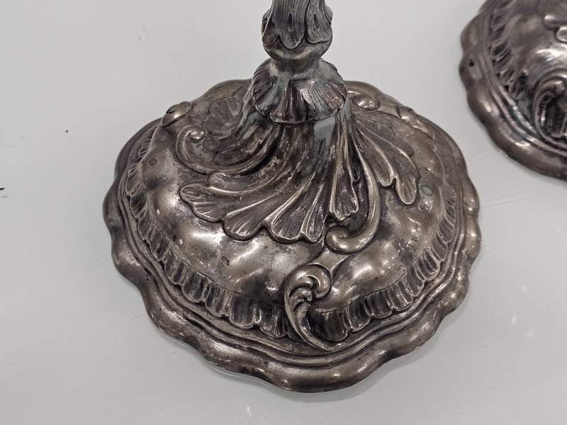 #1029 2kpl hopeisia 1800-luvun kynttilänjalkoja. 1060g