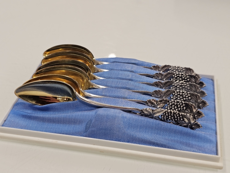 #1034 6kpl hopeisia kahvilusikoita. 65g