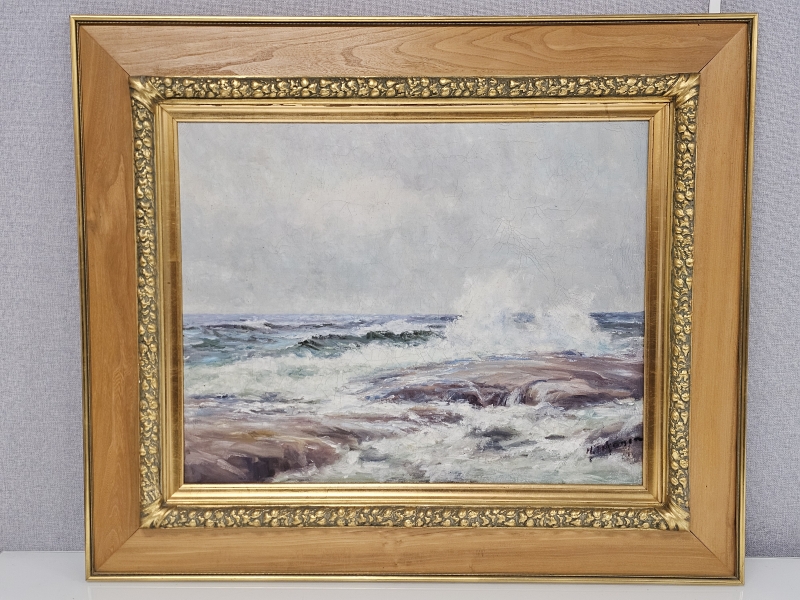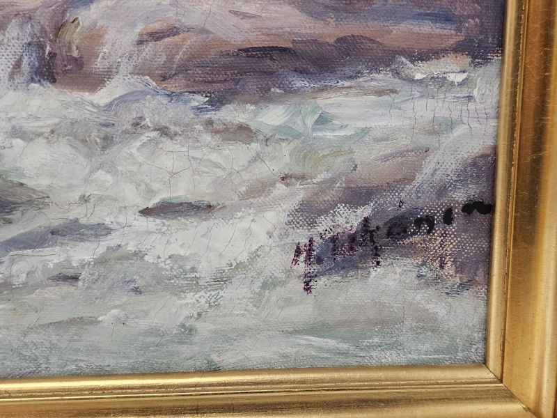 Maalauksessa kulumaa. Kehyksineen 92,5cm x 78,5cm