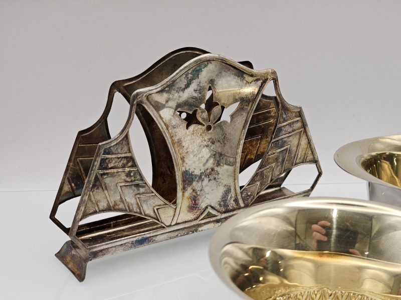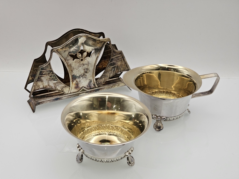 #1048 - Hopeinen sokerikko, kermakko & servettiteline