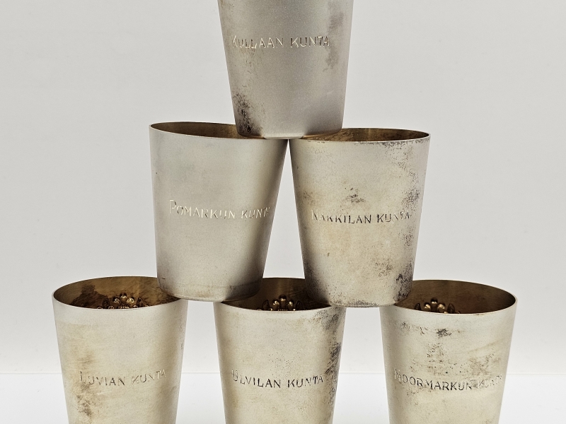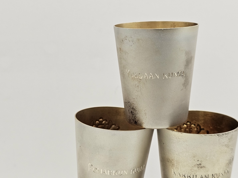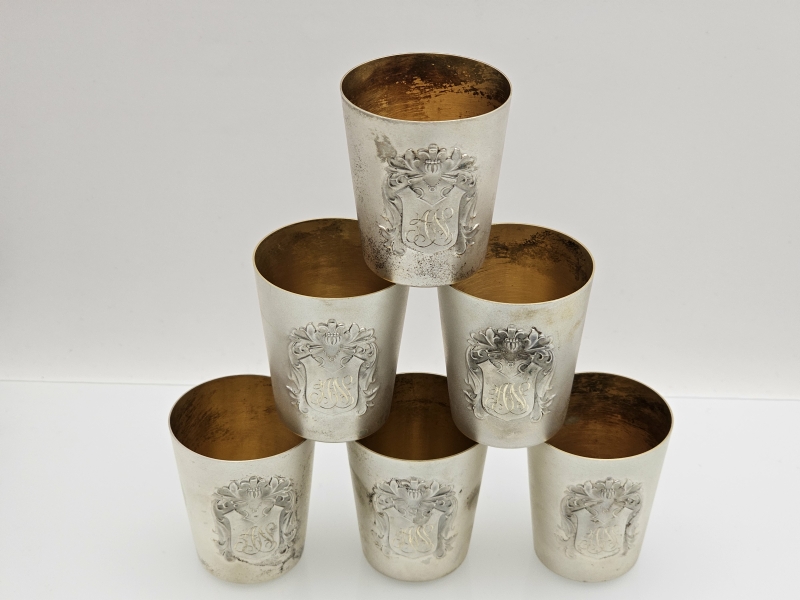 #1049 - 6kpl hopeisia snapsikuppeja. 142g