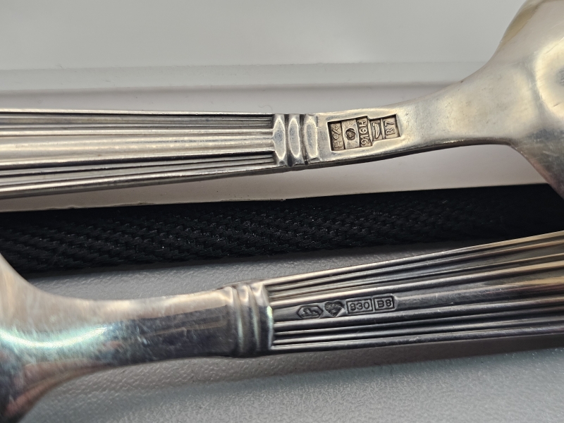 6kpl 916/1000 hopeaa ja 4kpl 830/1000. Yhteensä 379g. P: 17,5cm. Ei kaiverruksia
