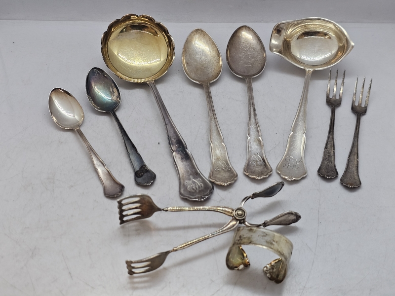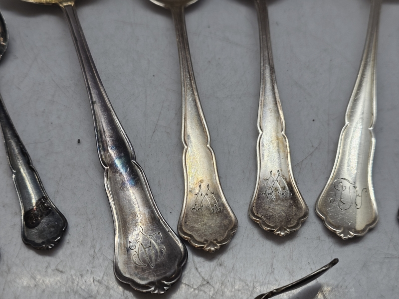 #1113 Hyvä erä hopeisia chippendale ottimia, mm. suolalusikka. 258g
