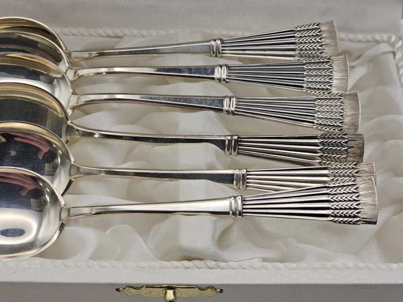 #1300 6kpl hopeisia Tähkä -sarjan kahvilusikoita. 74g