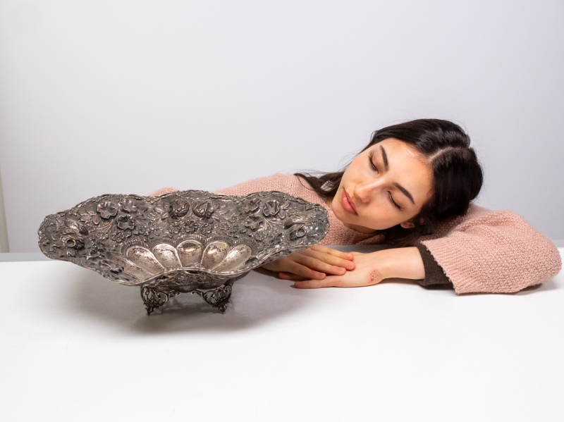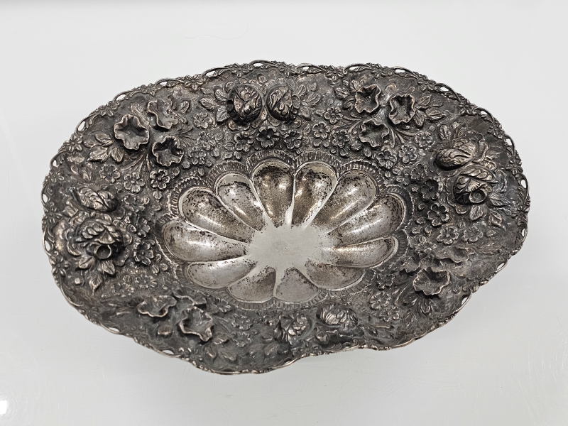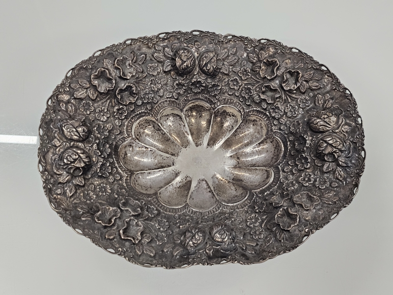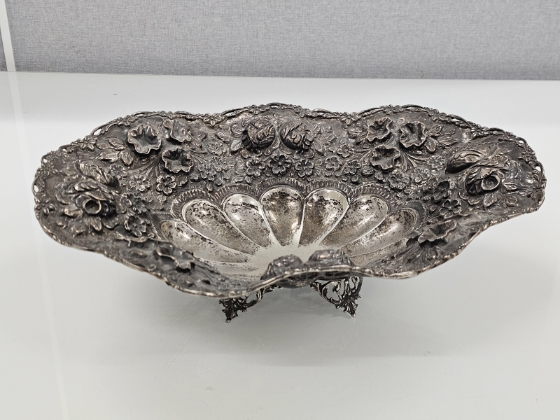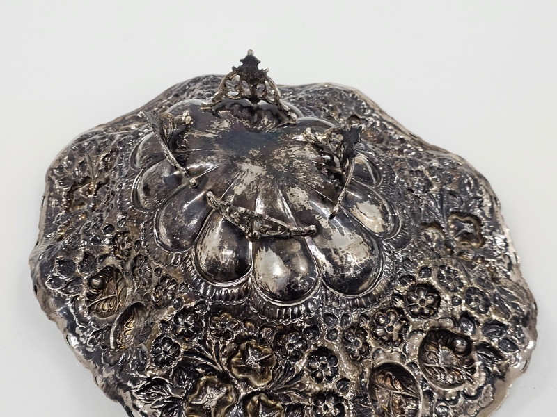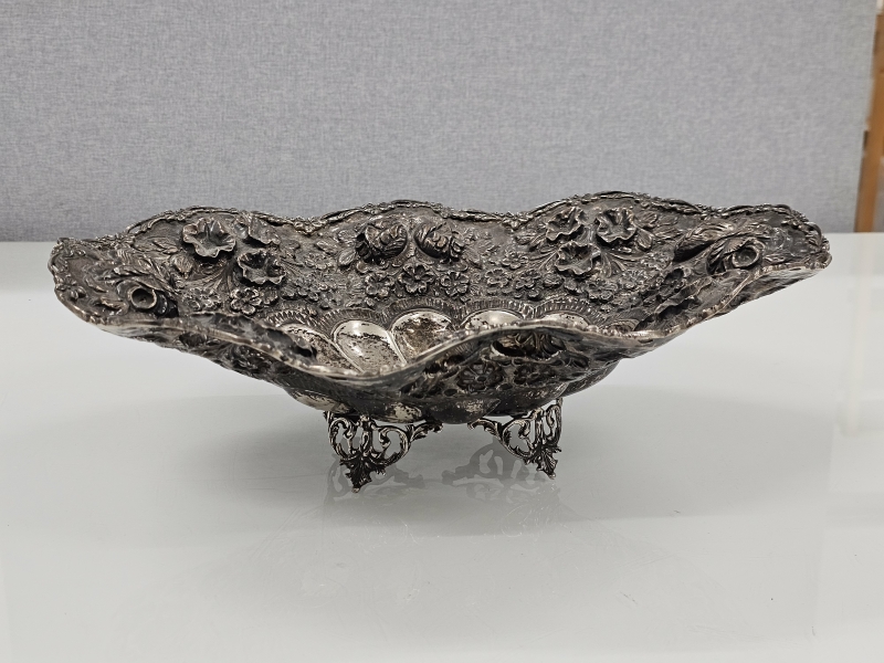 #1084 Iso ja näyttävä hopeamalja kauniilla koristuksilla, lähes 1,4kg. 1385g