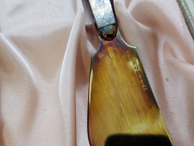 Myös terät hopeaa. Bruttopaino 93g. Ei kaiverruksia. Pisin 17,5cm