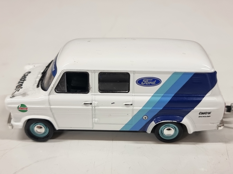 #2010 Pienoismalli Ford Escort RS1800 Ari Vatanen 1981 + Ford Transit huoltoauto, valmistaja Trofeu
