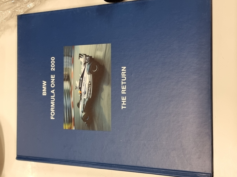 Upea kokonaisuus. Saatu BMW--tehdas vierailun yhteydessä. Mm. Taulu, kirja ja lippis. Taulun mitat: L: 103cm K: 73cm. Taulussa muutama naarmu.