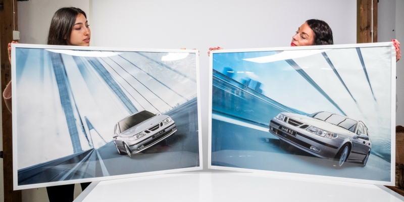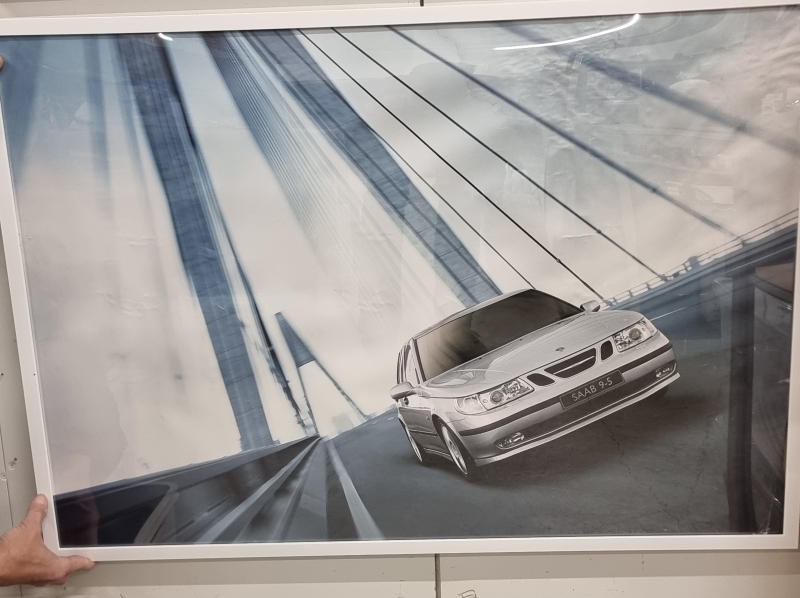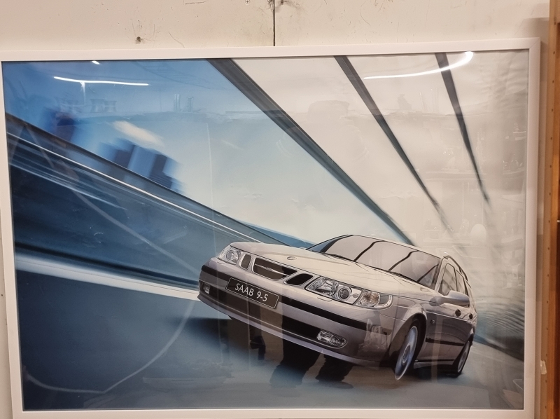 #2028 2kpl Saab 95 kehystettyjä esittelytauluja. Ns. Dealer-tuote