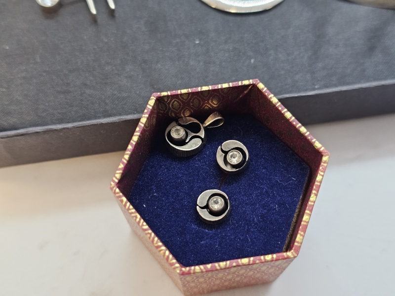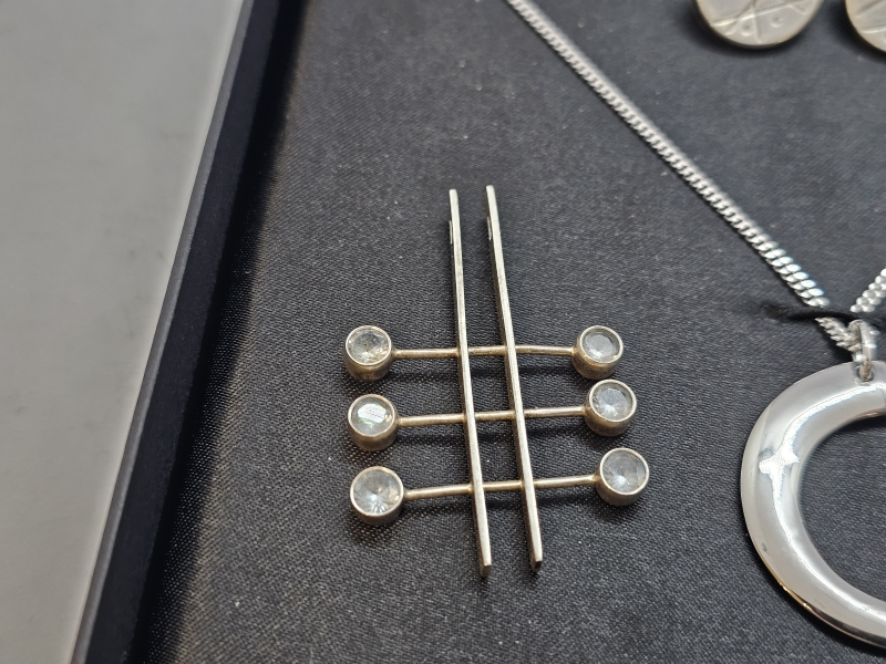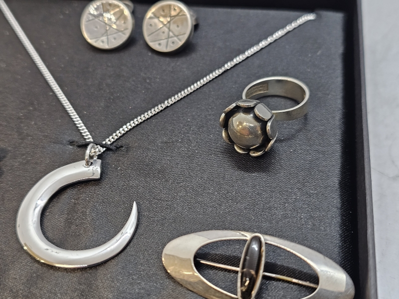#1099 - Erä hopeisia designkoruja: Mm. Tapio Wirkkala, Erik Granit, Karl Laine yms.