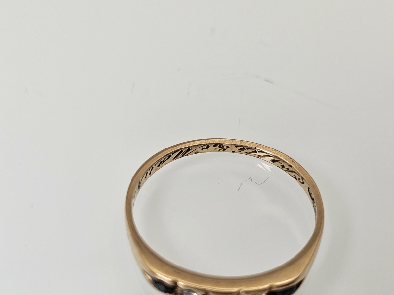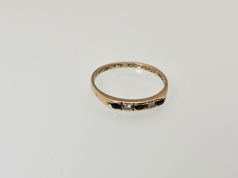 #1244 18k kultainen sormus sinisafiireilla ja timanteilla, 1,79g