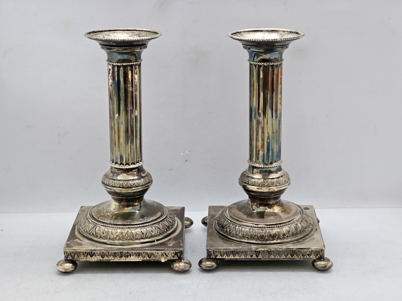#1095 - Hopeiset Pilari -kynttilänjalat, 2kpl. Br. 645g