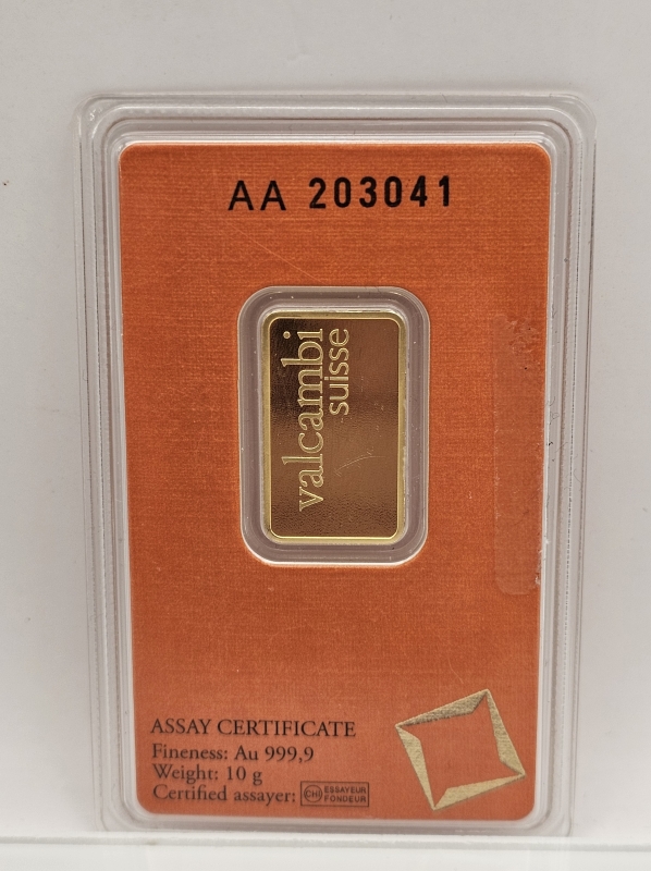 #1208 Kultaharkko: Valcambi Suisse, 999.9 kultaa, 10g