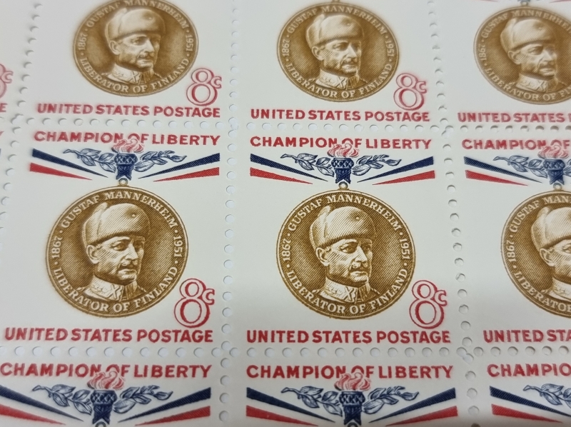 #1654 Täysi arkki Yhdysvaltalaisia Mannerheim -postimerkkejä