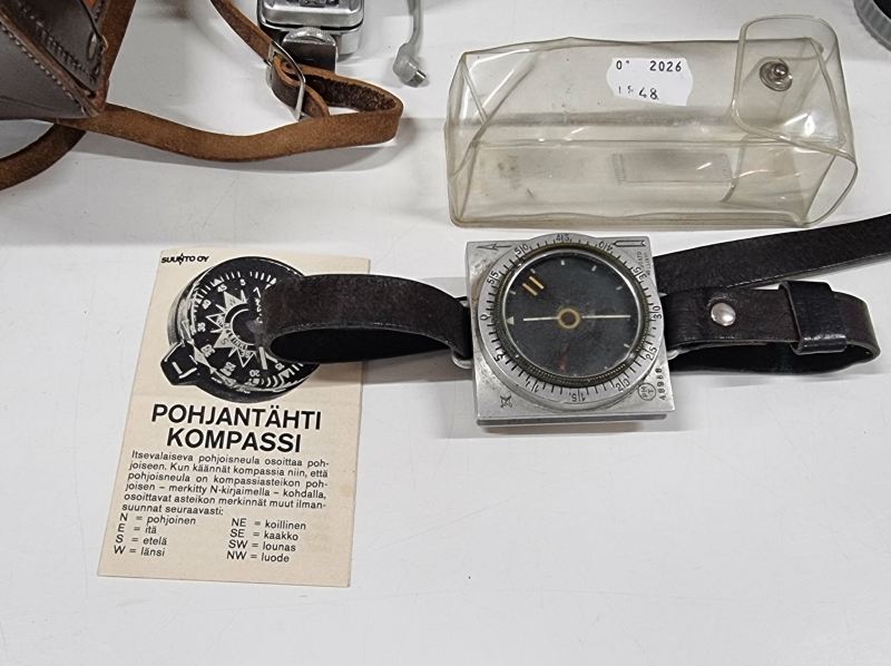 #2508 Erä vanhoja kameroita, kiikarit + kompassi, mm. Zuihi, Yashica