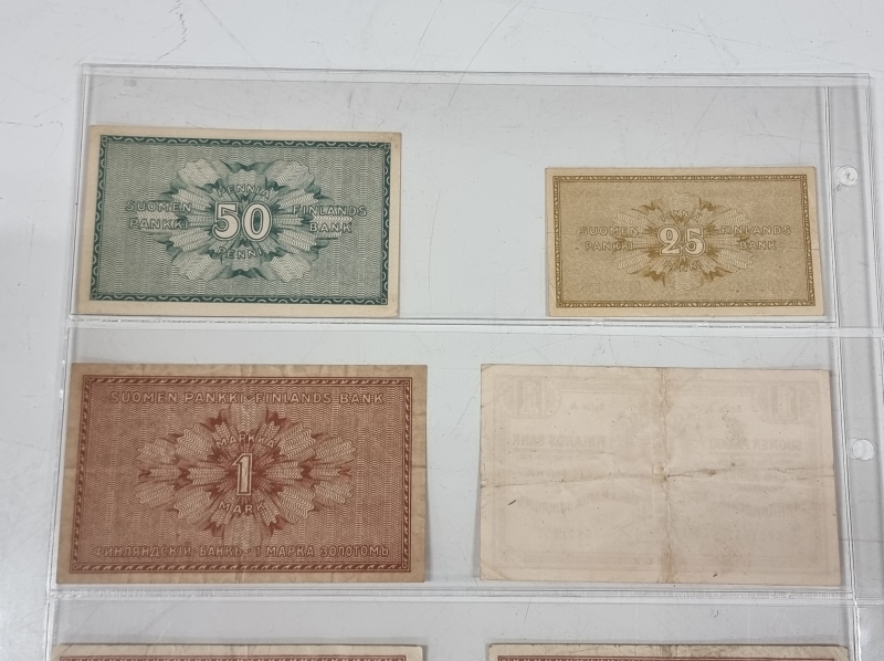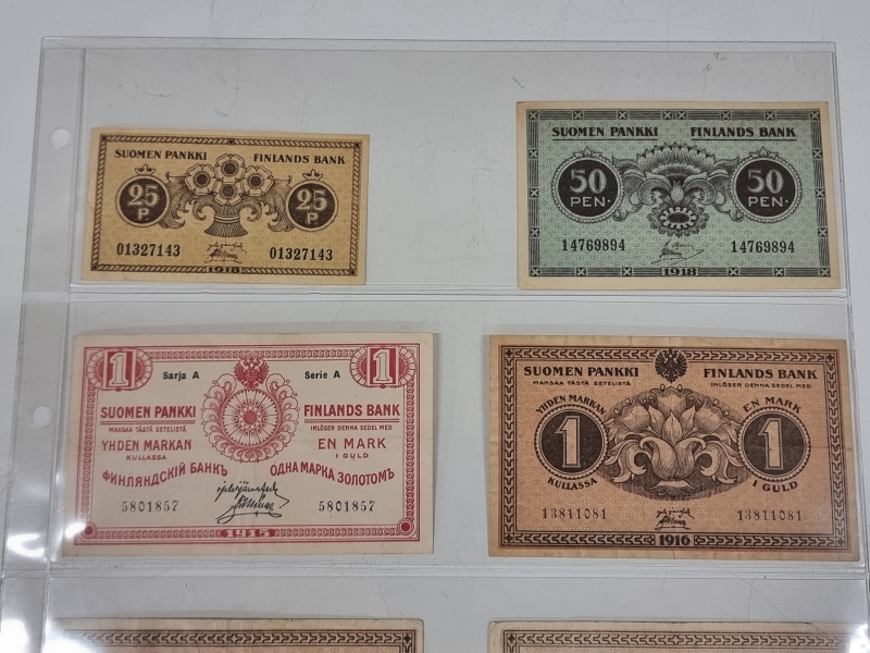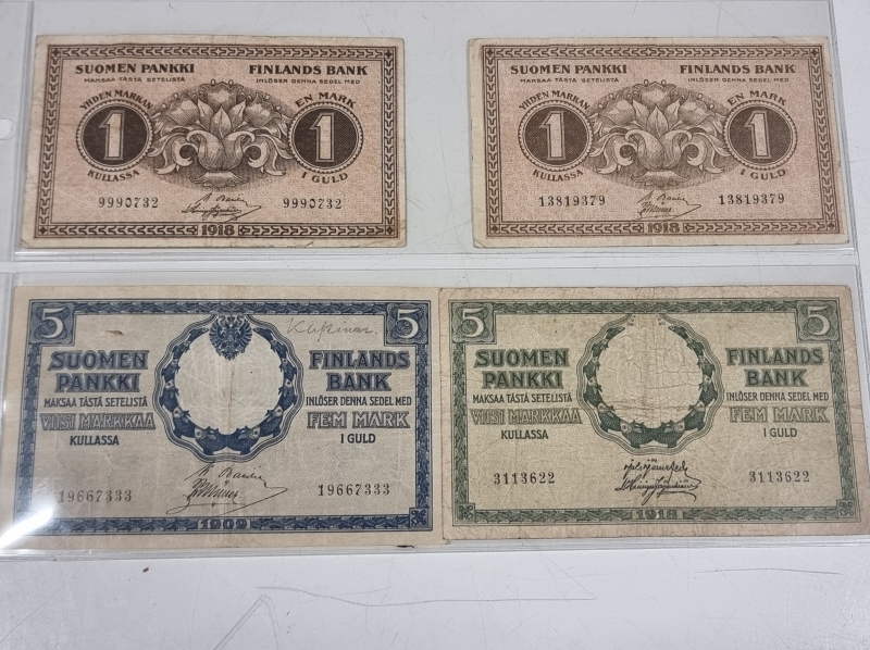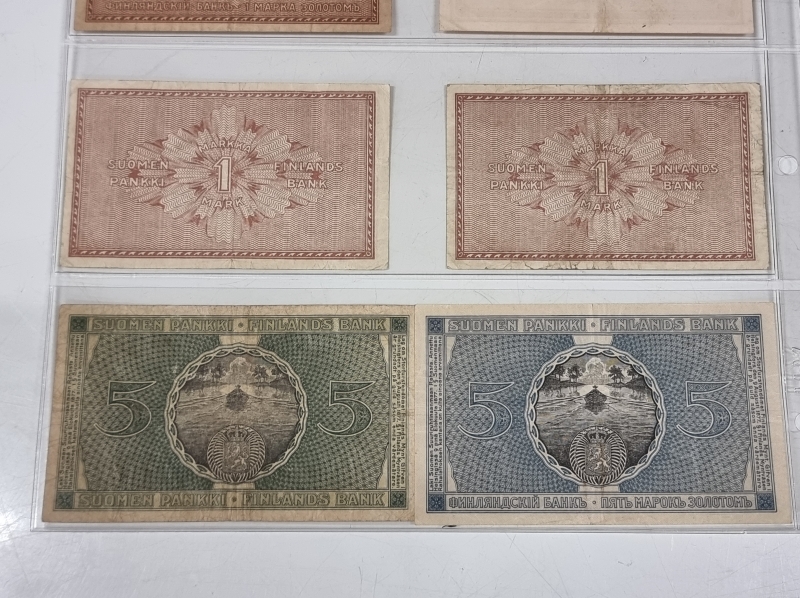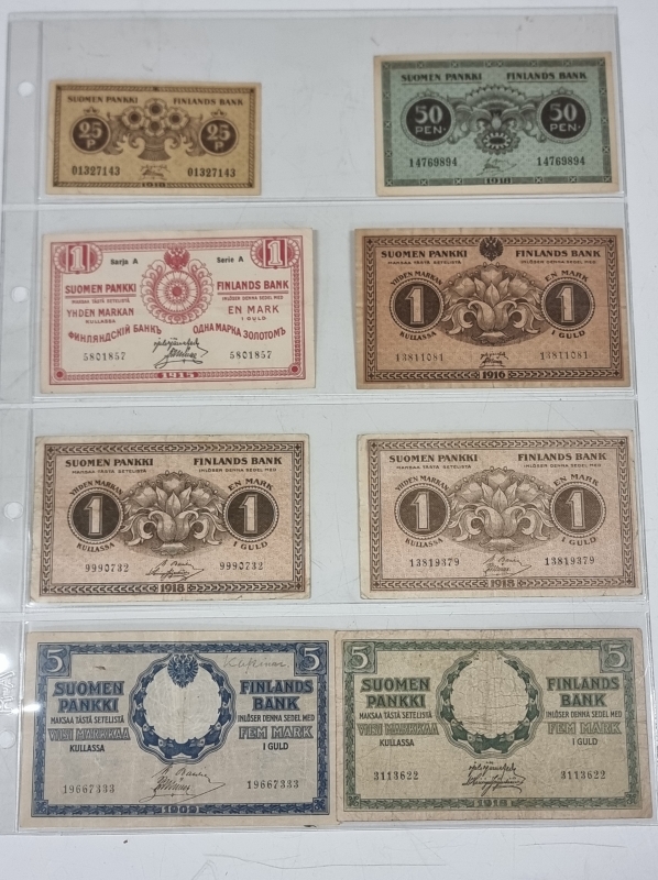 #1920 8kpl suomalaisia seteleitä: Mm. 5mk 1909 ja 1mk 1915