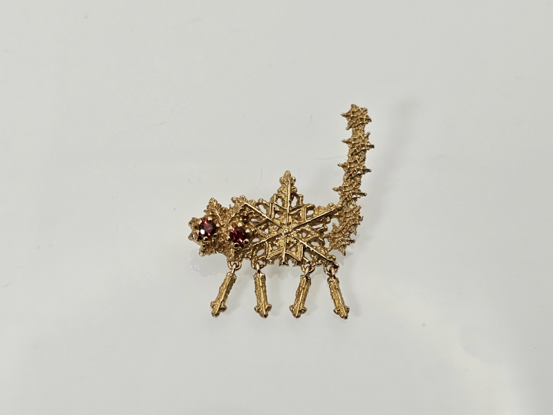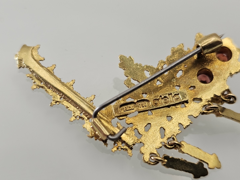 #1131 - 18k kultainen rintakoru, Kari Hirvosen valmistama, "Vonna Snowcat" lapin granaateilla, 5,61g