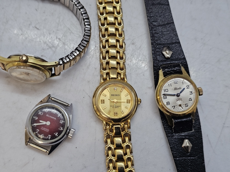 #1135 4kpl rannekelloja: Seiko, Precis, Atlantic ja Olympia