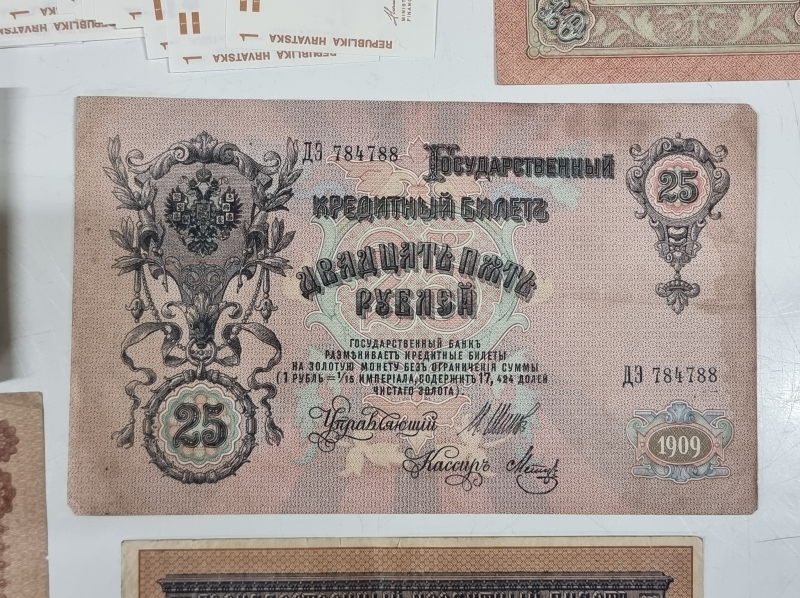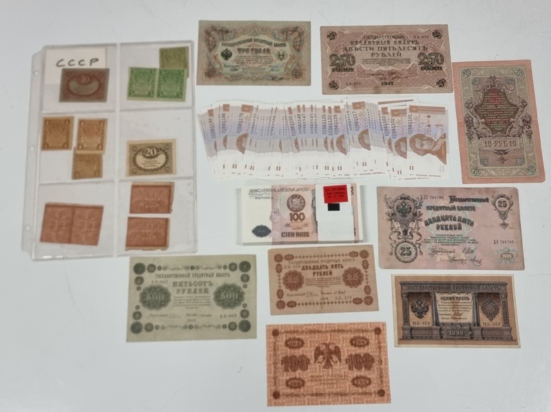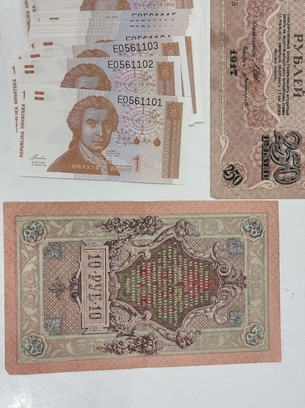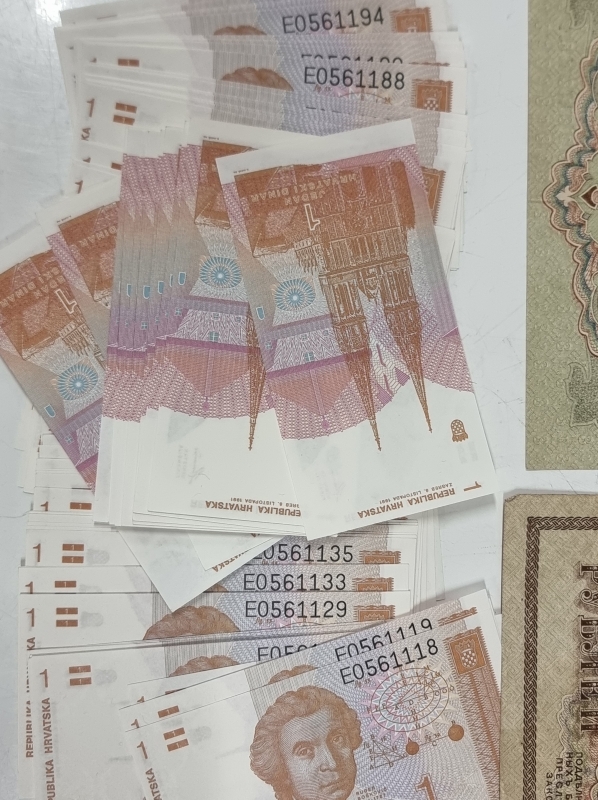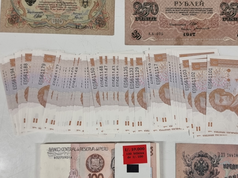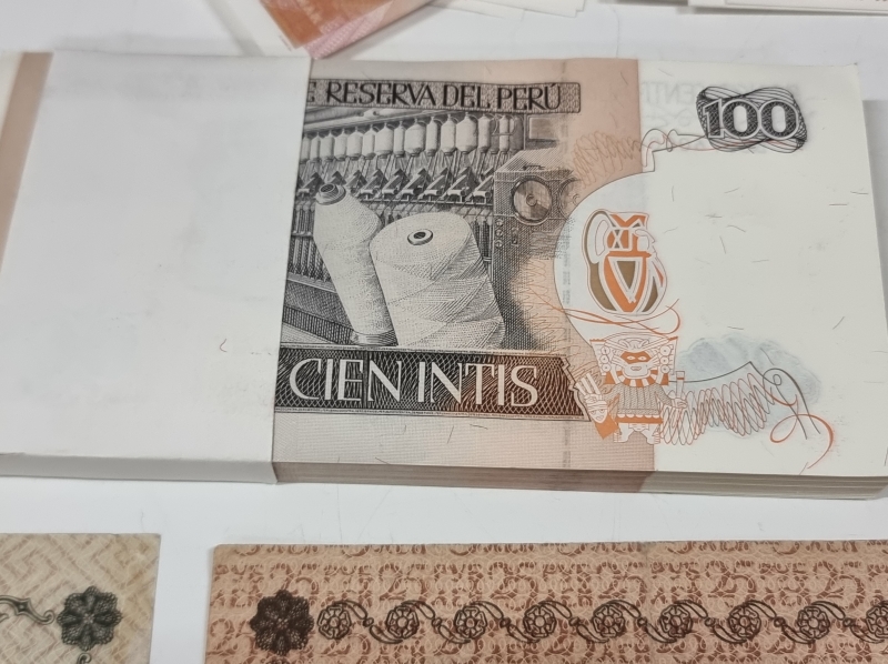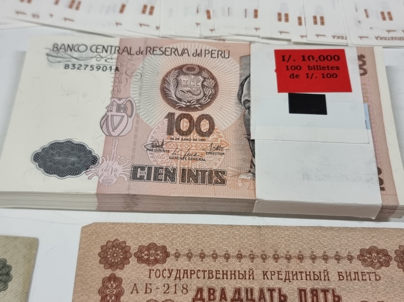 #1923 - Erä ulkomaisia seteleitä: Mm. 1 dinaari 1991 ja nippu Perulaisia seteleitä