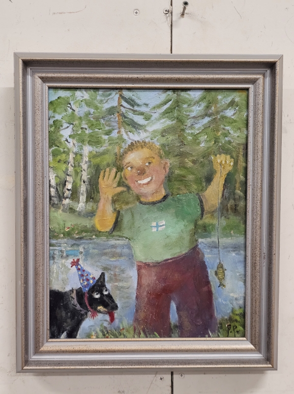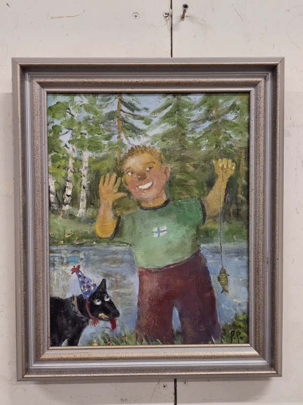 #2149 - Öljyvärimaalaus, Pertti Pylkkönen, "Poika kalarannalla"