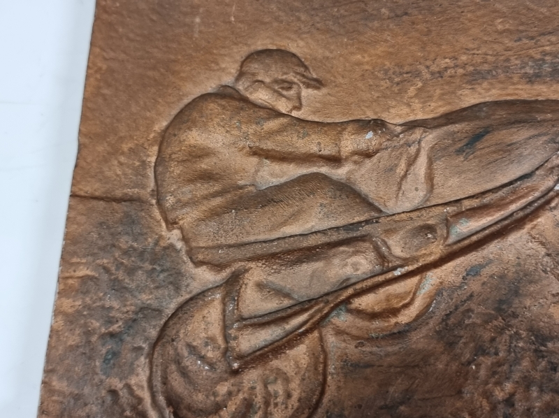 #2325 - Metallinen seinäreliefi raviohjastaja, S. Mäkelä