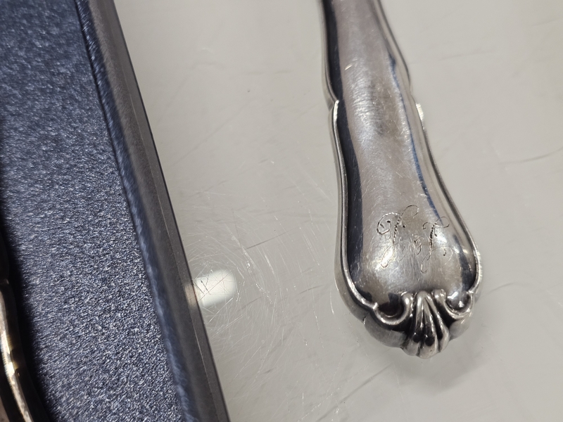 #1195 Erä hopeaa: 2kpl Musla-lusikoita + chippendale -ottimia. Br. 393g