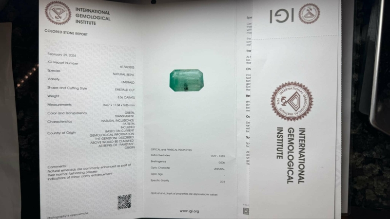 #1127 8,36ct smaragdi + IGI -todistus