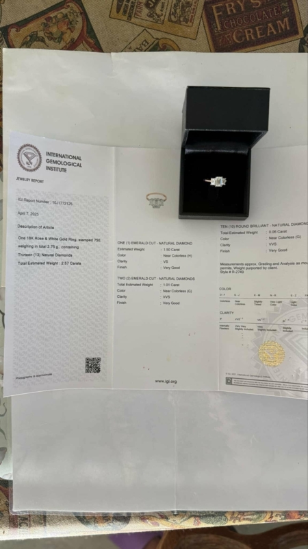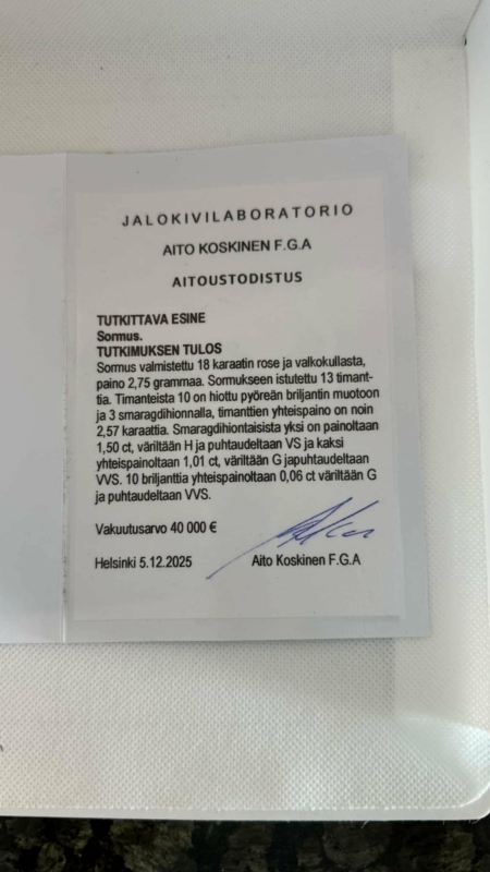 Bruttopaino 2,75g. Mukana kaksi aitoustodistusta. Koko 17