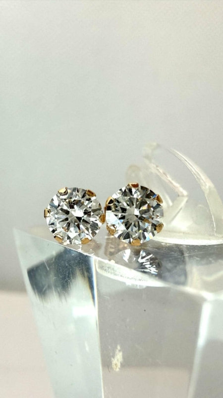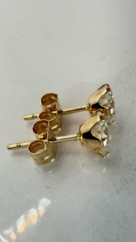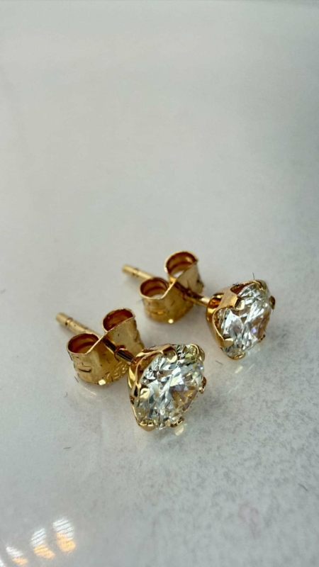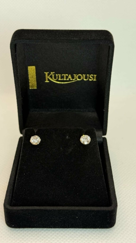 #1230 14k kultaiset korvakorut joissa molemmissa 0,50ct timantti, 0,68g