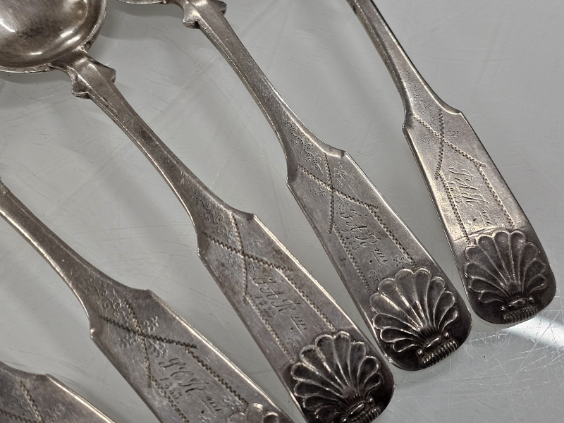 #1179 - 6kpl hopeisia isoja lusikoita, Carl Jakob Hedman, Oulu 1883. 309g