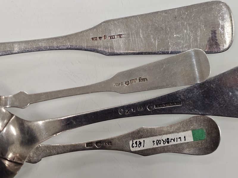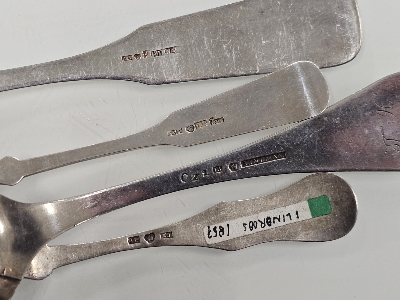 #1180 - Erä 1800-luvun hopeisia lusikoita: Mm. Fredrik Alfred Bäckström Vaasa 1870. 221g