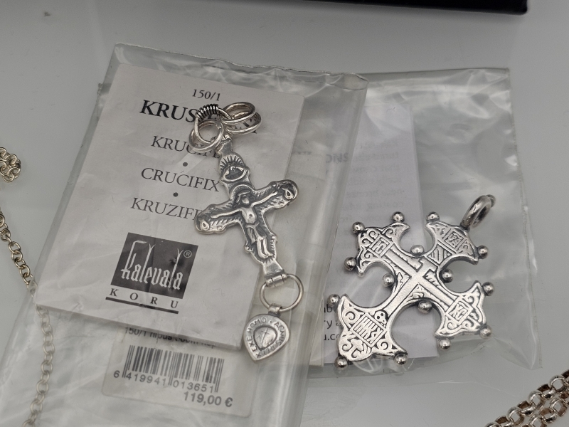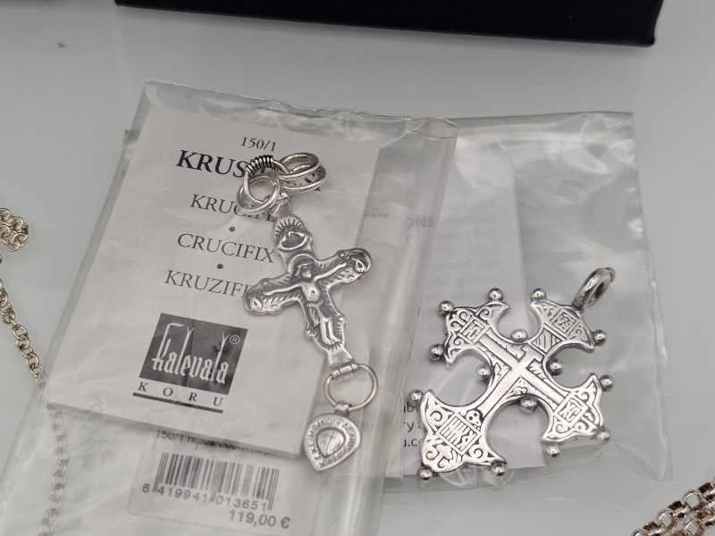 #1276 - Kalevala koru, 2kpl hopeisia riipuksia: Ilomantsin risti / Krusifiksi