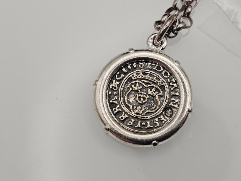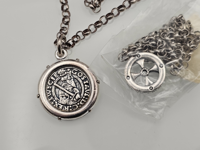 #1279 - Kalevala koru, hopeiset riipukset: Kirkkoristi / Puolimarkka