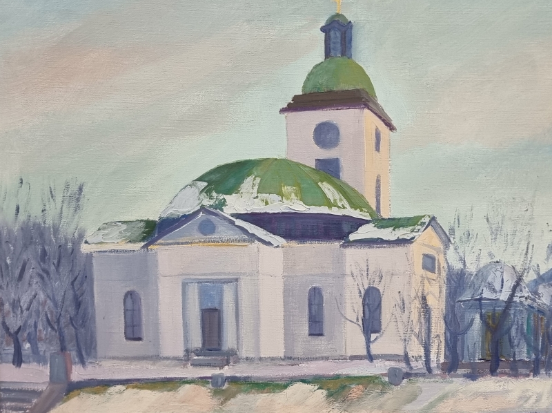 #2355 Öljyvärimaalaus Hämeenlinnan kirkosta, J. Tamminen -83