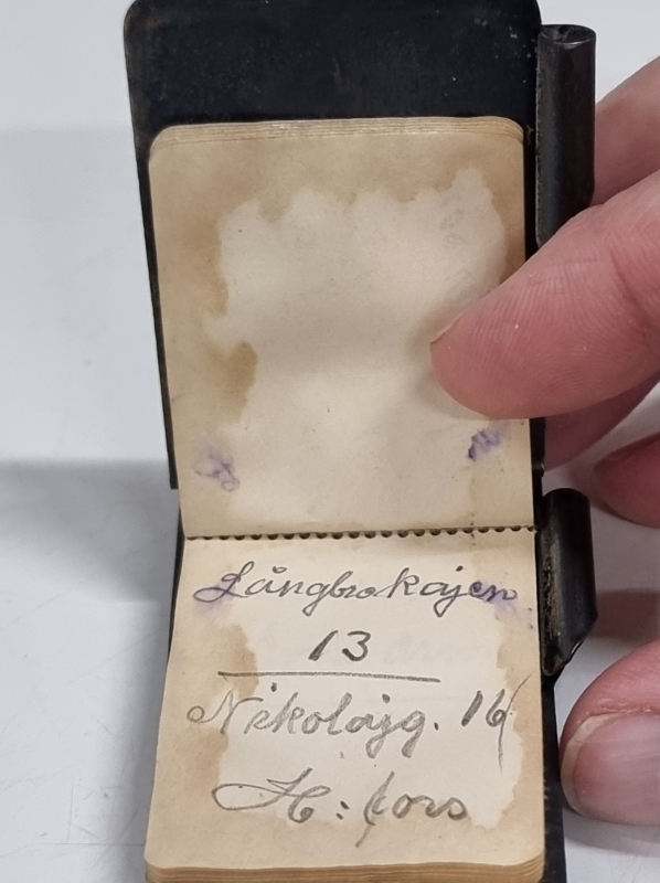 #1700 3kpl tsaarinaikasia esineitä: Muistivihko, rasia ja rintaneula
