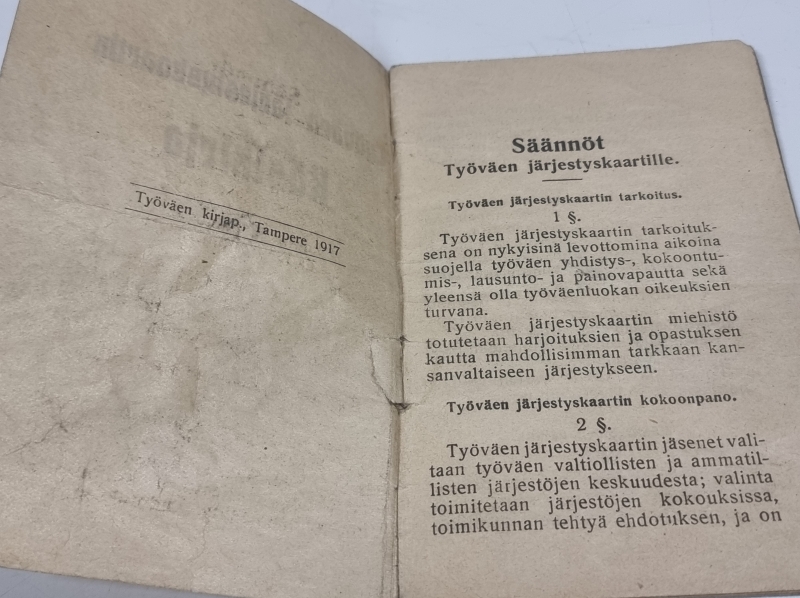 #1704 Erittäin harvinainen ensimmäinen painos: Työväen järjestyskaartin käsikirja v. 1917