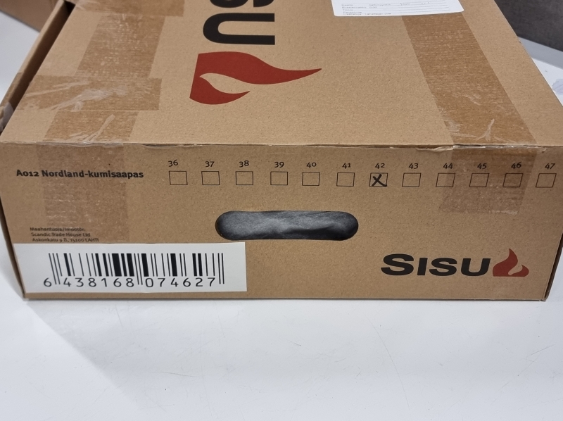 #2242 - 2 paria Sisu kumisaappaita + maastokuviollinen sääsuoja