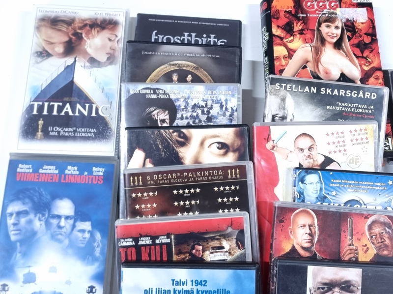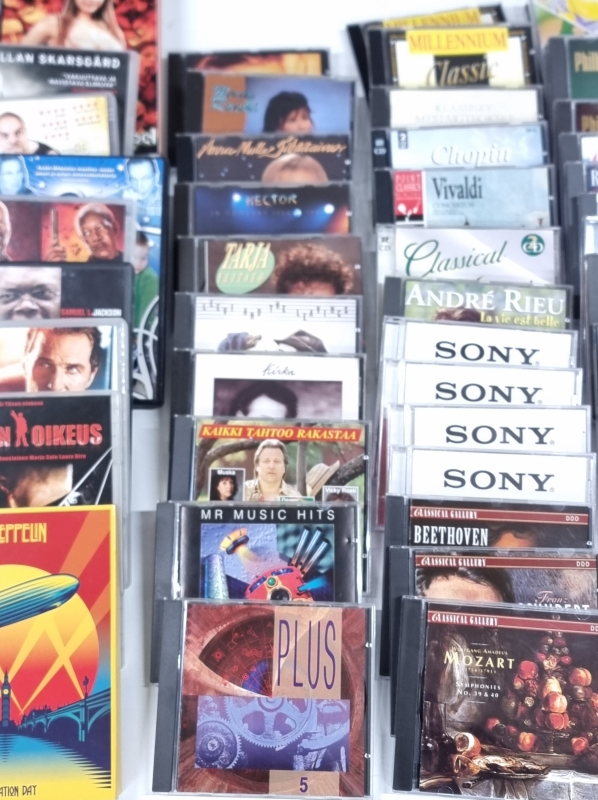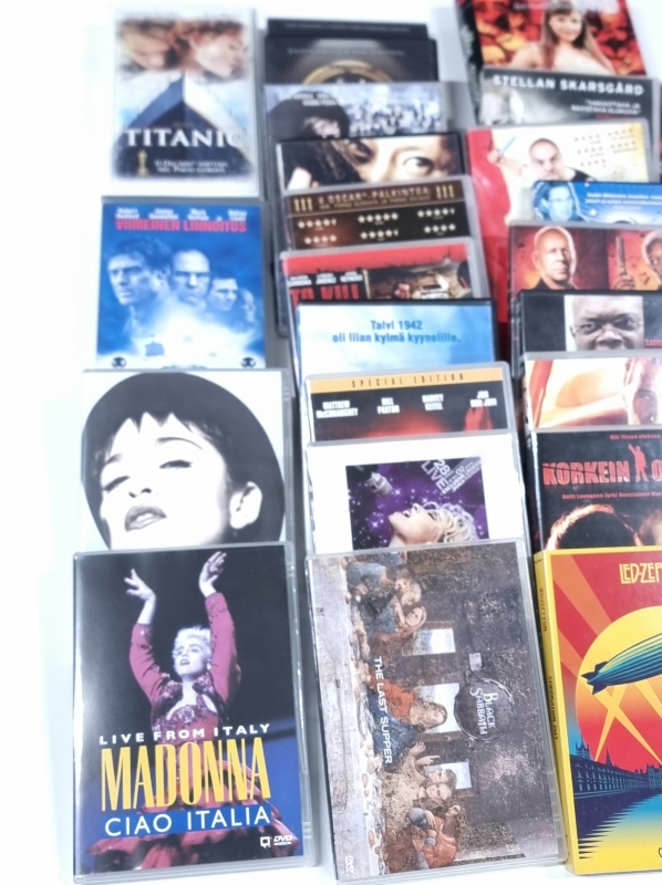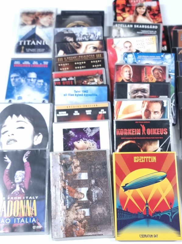 #2267 - Erä CD- ja DVD-levyjä ja VHS-kasetteja, mm. ZZ Top, Elvis, Hector