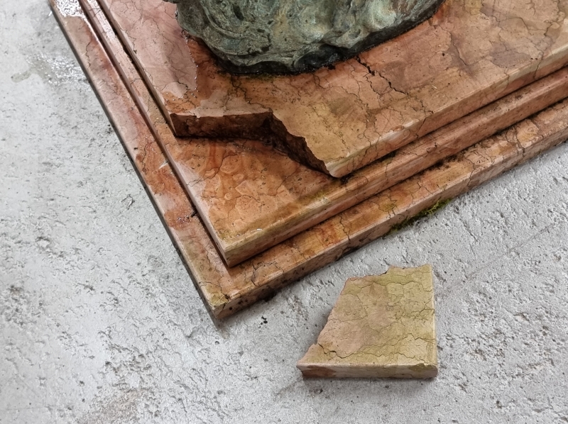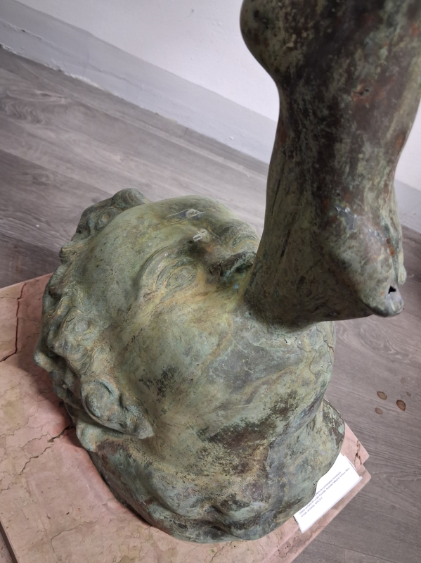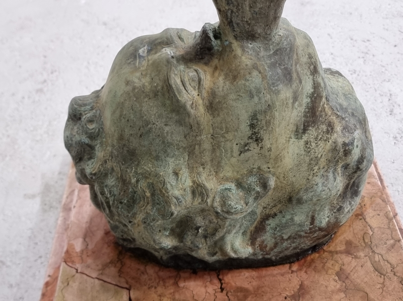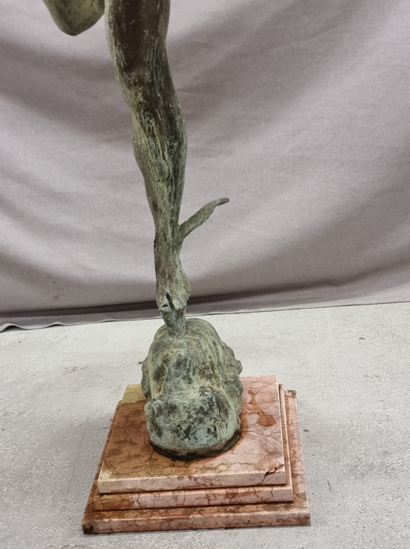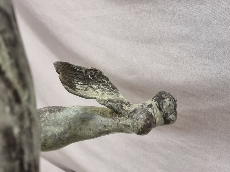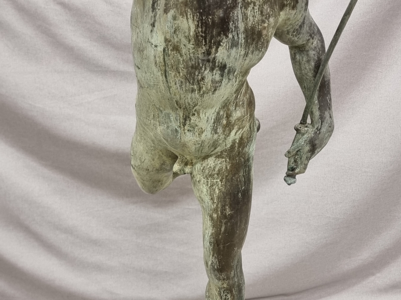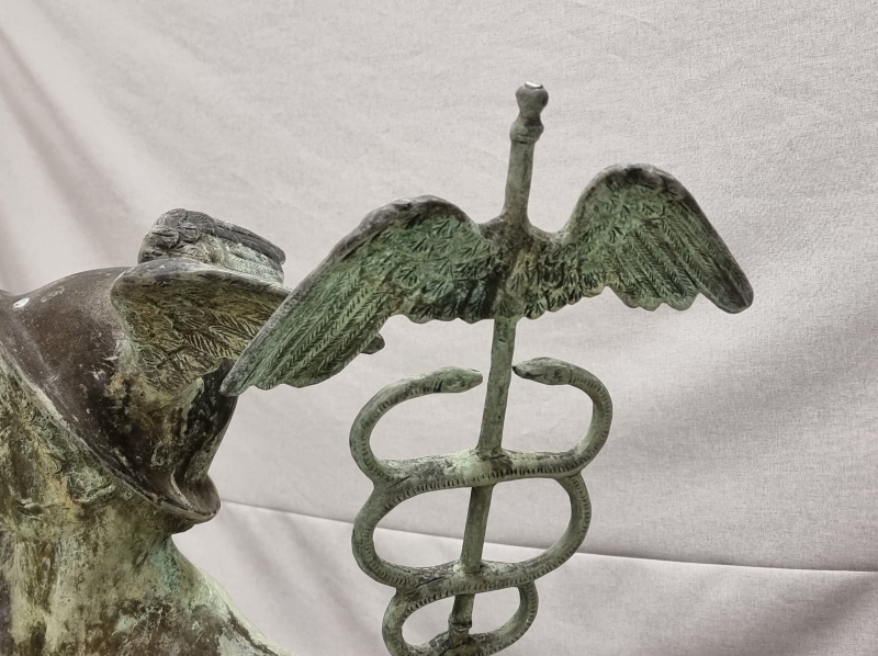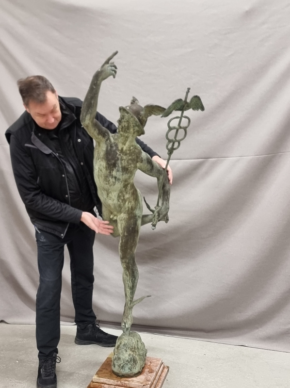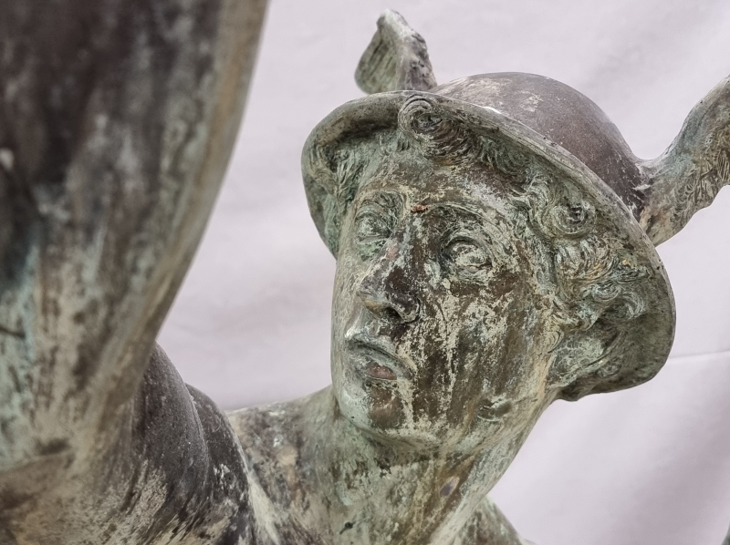 #1801 Näyttävä , vanha Hermes/Merkurius pronssipatsas kivipatsaalla