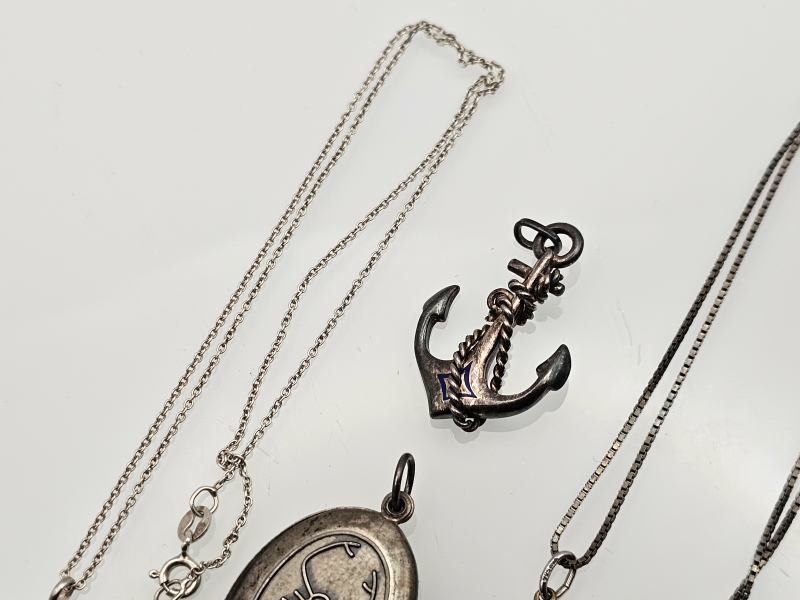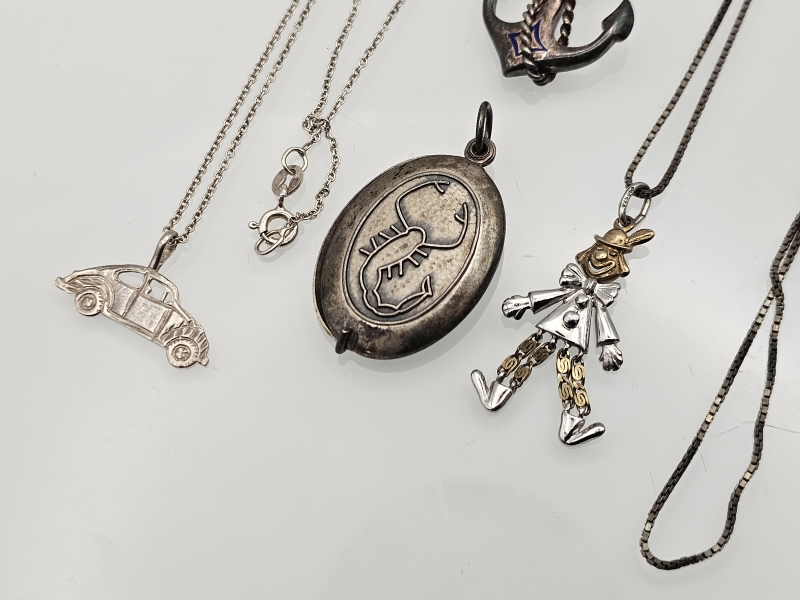 #1366 Hopeisia riipuksia ja ketjut: Mm. Volkswagen, ankkuri ym.